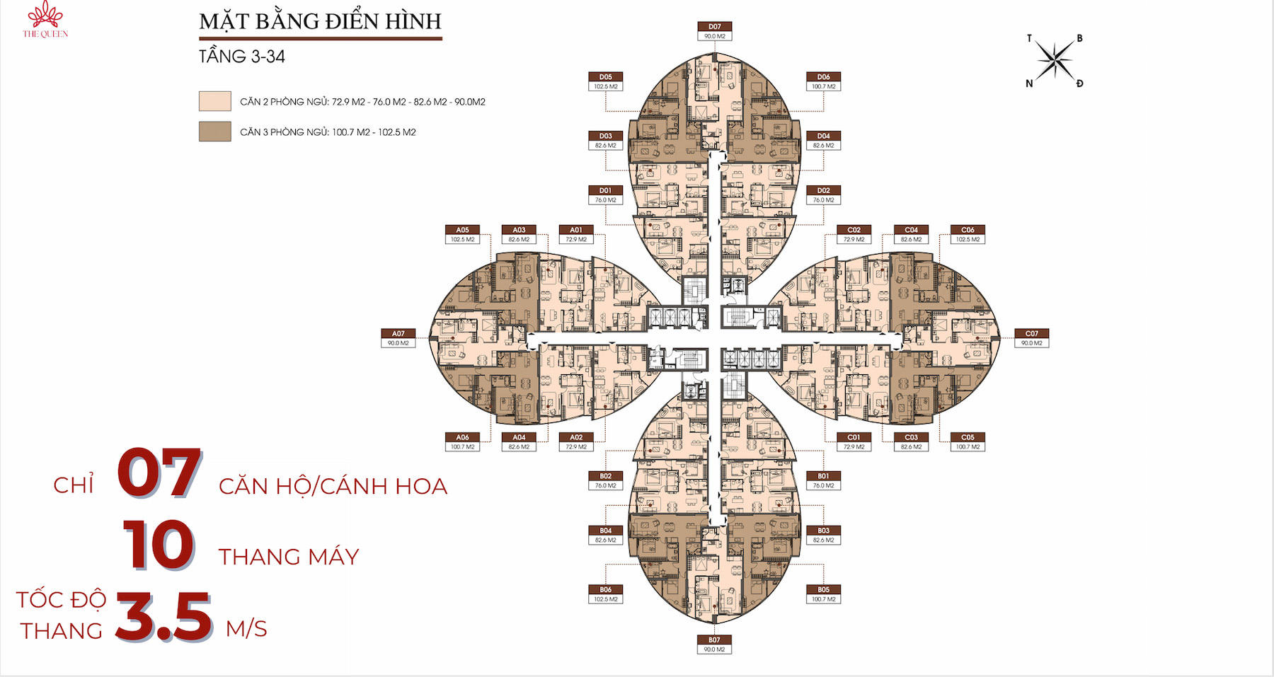 Tổng số căn hộ: 931 căn hộ, mỗi cánh hoa có 7 căn hộ.